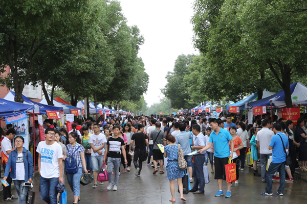此次高招咨詢會受到學生及家長的廣泛關注,雖然天空下起了小雨,但這依然抵擋不住考生和家長的咨詢熱情,仍吸引了3萬多人前來咨詢報考問題。上午八時,高招會現場人頭攢動,不少招生展臺前已經排起了長龍,有的家長挨個咨詢意向學校的招生計劃、分數線,有的考生站在展臺旁,仔細傾聽,用紙筆記錄各學校的情況,不少熱門高校展棚里外被圍得水泄不通,出現了家長扎堆取經的現象。各大高校用展板和傳單的形式將自家的亮點和優勢展現出來,到場的招生代表耐心回答考生和家長提出的問題,介紹安徽新華學院的情況以及今年的招生政策,現場氣氛十分火爆。
